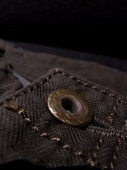 ヘリンボーンデニム製品ブリーチ製品染め+カーフタンニンシュリンク加工